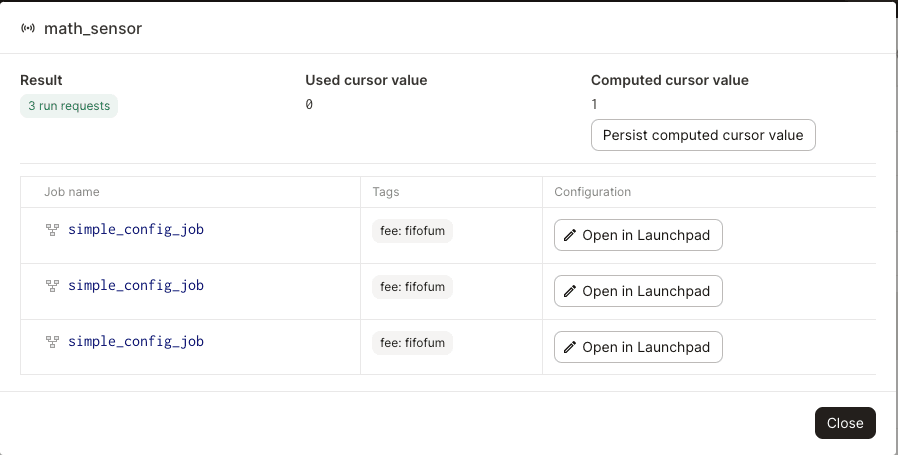 • cursor - A cursor field on SensorEvaluationContext that returns the last persisted cursor value from a previous evaluation